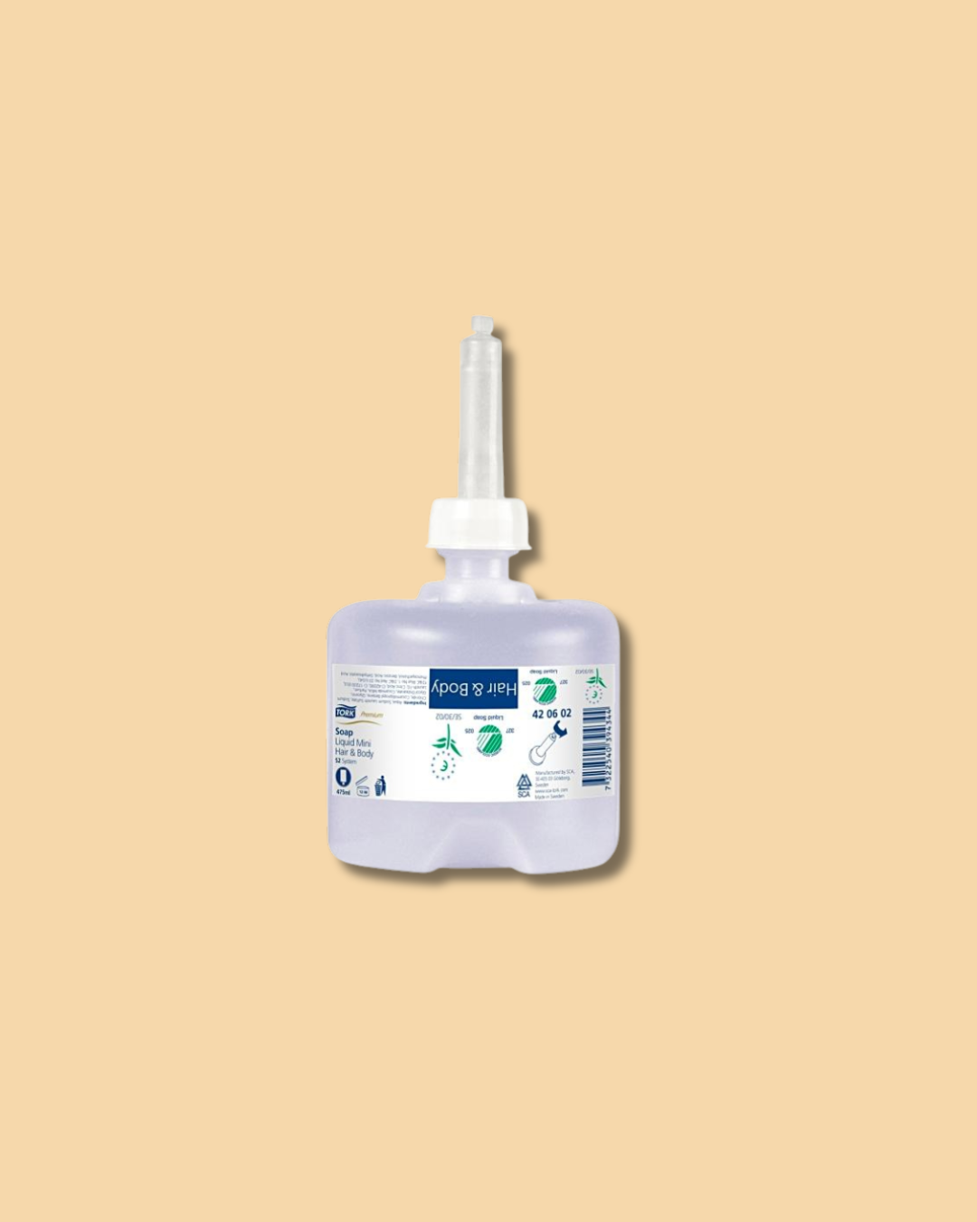 Blaues, mildes Haar- und Körpershampoo, mit angenehmem, erfrischendem Duft, geeignet für Frauen und Männer, für ein weiches Gefühl auf Haut und Haaren, geeignet für eine regelmässige Anwendung. Das Produkt ist verpackt in der 475 ml Spenderflasche.