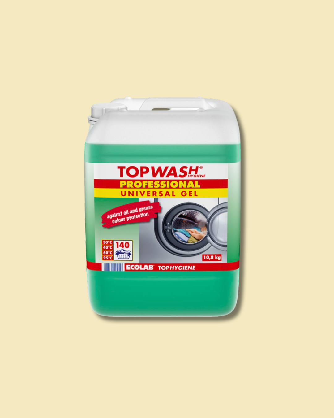 Topwash Professional Gelwaschmittel ist ein Flüssigvollwaschmittel auf Gel-Basis. Es hält Farben länger stabil, da es ohne Bleichmittel und mit Farbfrischestabilisator ist. Topwash Professional Gelwaschmittel wirkt bereits bei niedrigen Temperaturen.